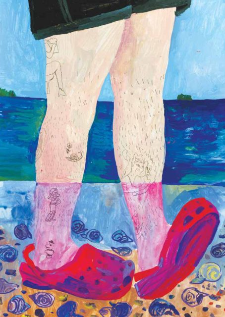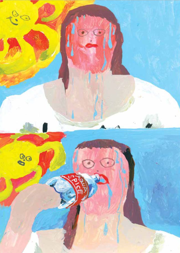 This creates a comic unlike anything I’ve ever seen. Booth’s paintings are mostly gouache and intensely colorful without being overwhelming. Her depictions of herself are liable to change from panel to panel with a freedom akin to Aline Kominsky-Crumb’s dynamic, loose style of self-portraiture. These elements come together to create a work which is both incredibly entertaining, yet also formally challenging and wholly original.