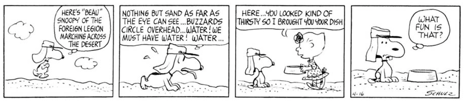 SCHULZ: I don't know what it was that inspired them. I have no idea. Except that I took a unique approach as the strip developed. I think I did things that no one else had ever done.
