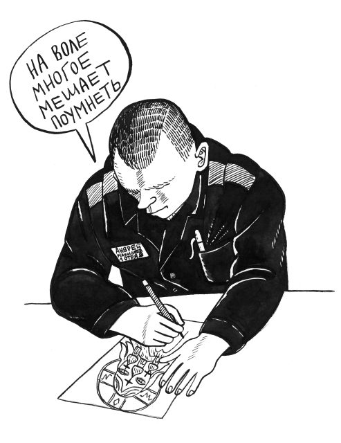 One day, the independent human rights organisation The Centre for Prison Reform asked me to give a free lesson at a juvenile prison. They invited interesting people from different professional fields who could “bring a piece of freedom” for these teenagers. I hoped to use the lesson as an opportunity to draw a graphic reportage from a restricted place. However, my first lesson evoked such enthusiasm among the inmates that I returned, and then, again and again, gradually getting drawn into the role of a teacher. My first education was as an art teacher. So, I remembered how to prepare seminars and created an experimental program for people with any level of drawing ability. Funny that some of the tasks were so good that I still use them in my workshops at the best universities in Europe.