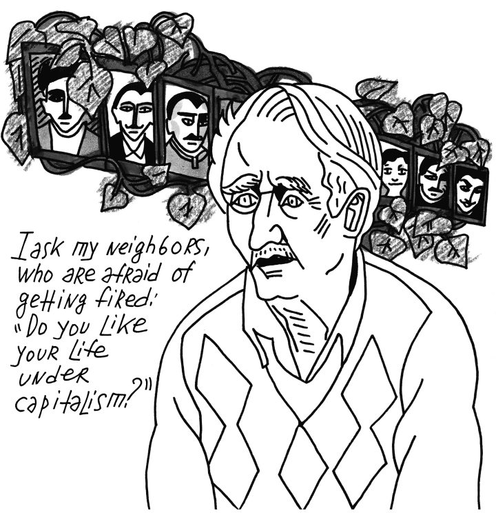 As the Soviet era gave way to a new and fractured post-Soviet world, Lomasko found a way to draw the two passions together, taking on the role of a graphic journalist whose drawings of a rapidly changing world became a visual chronicle of cultures and memories that were, even then, becoming lost to time. Influenced by the work of the popular 1930’s Russian travel writers Ilf and Petrov, Lomasko began to assemble a series of portraits and accompanying textual pieces, documenting the widespread and formerly hidden cultures of the Soviet periphery, traveling throughout Russia and other former Soviet Republics to document the people she met along the way.