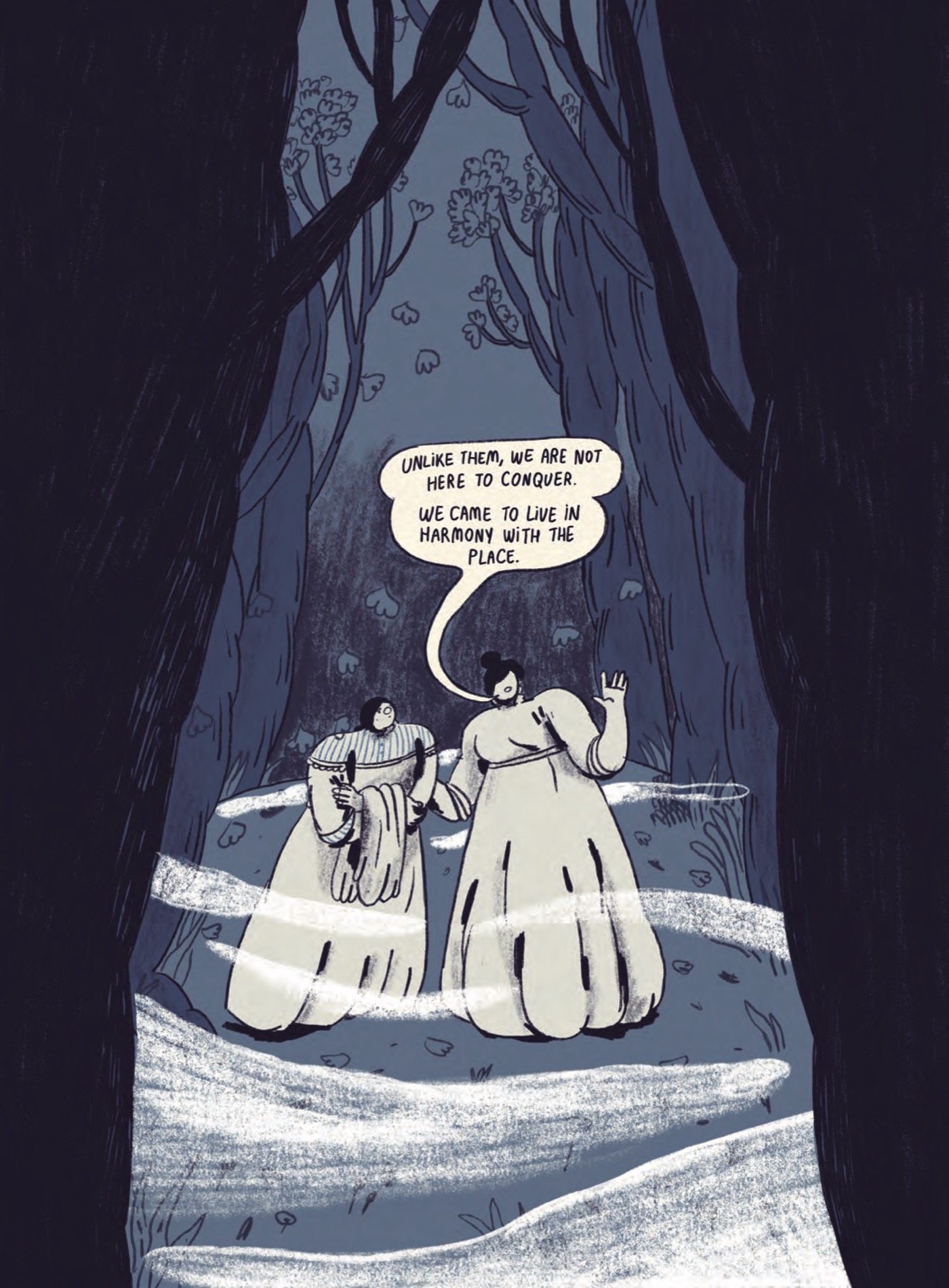 No supernatural interference is needed to make you want to keep reading this book, its pages generate enough excitement of their own to keep you ravenously flipping. True to the title, it contains plenty of occult goings on, and some sinister stuff as well, as Sole Otero takes us through a wide panorama of three sisters and their goat, and how their legacy affects the various communities around them. Over a good 250 years or so too, as the book begins in 1768, and in a quite wonderful way as thick clouds part to reveal the approaching Argentinian shoreline as this quartet is set to arrive in the New World. Spread out over four pages, this unveiling has the feel of a magic spell coming to fruition.