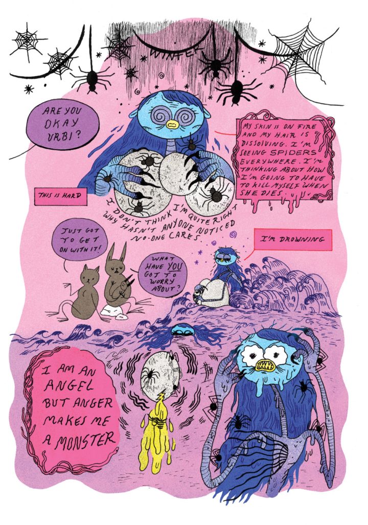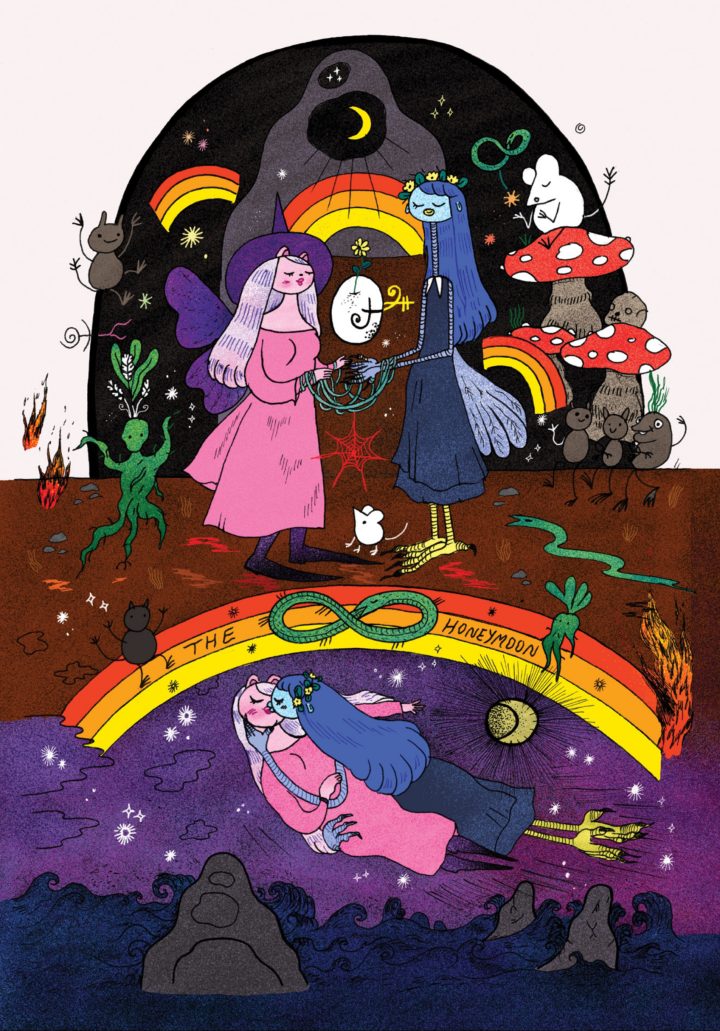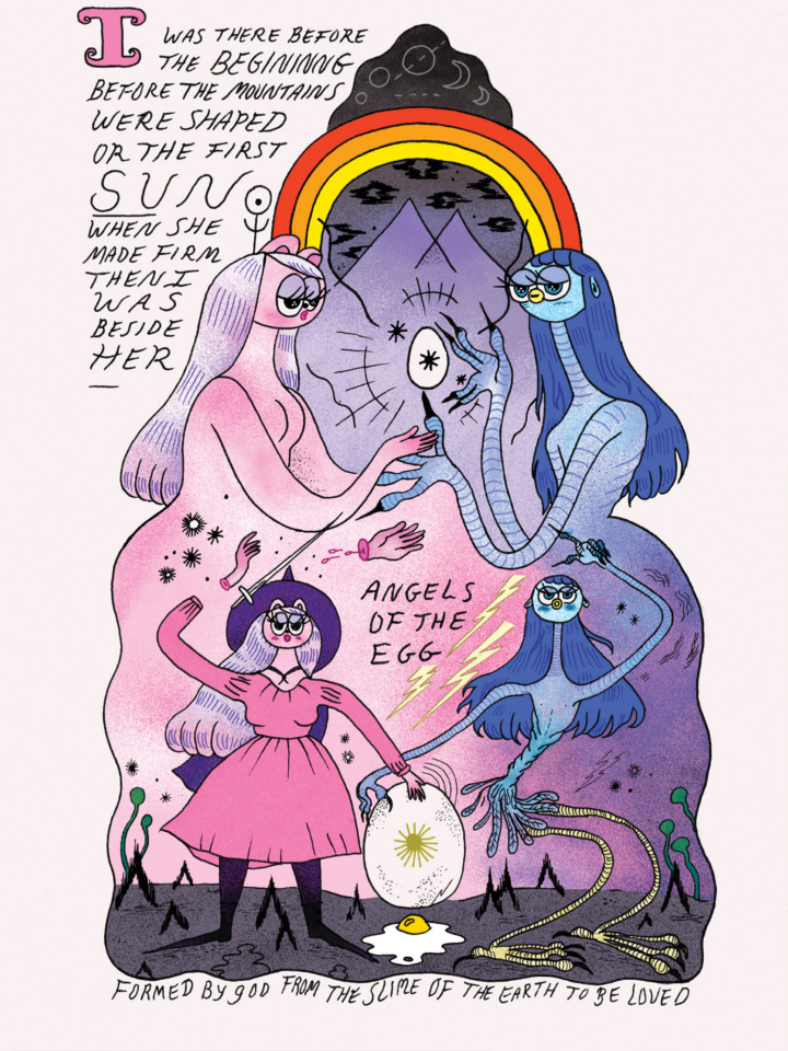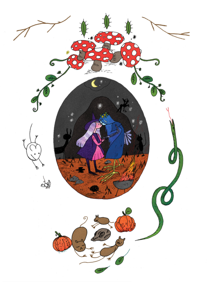 The Witch's Egg is a magical apocalyptic romance about a witch named Urfi who falls in love with an angel; their forbidden love drives the angel insane, and Urfi has to flee with their children -- then, as the children grow up, they and Urfi work together to fix the broken relationship and pay their debts. The art is a wonderful combination of cute and macabre (think Adventure Time by way of The Nightmare Before Christmas), a great complement to this queer feminist epic quest adventure story.