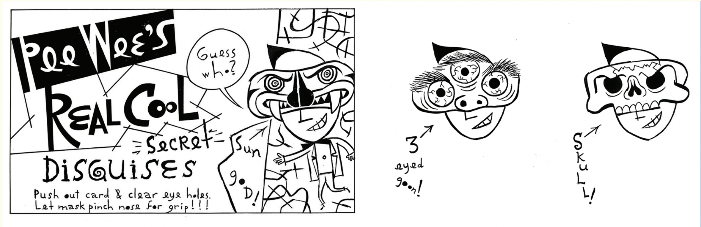 During those years his work appeared in many alternative publications, zines and comics anthologies–The New York Press, Kicks, Blab!, Drawn & Quarterly, The Duplex Planet–among others. In the late 1980s, King was among a number of all-star alternative cartoonists–Charles Burns, Kaz, Mark Newgarden, Gary Panter and others–who worked on an extremely ambitious project the Topps Company created for the popular Pee-wee's Playhouse Saturday morning television show; he contributed designs for the "Pee-wee's Playhouse Fun-Pak" series of trading cards, stickers and other items.
