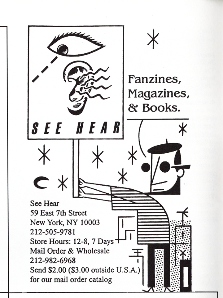 "I would have been two years out of high school, living with my parents in Connecticut, and just going back and forth to New York," said future Sonic Youth frontman Thurston Moore, who used to buy his Dammed and Sex Pistols records at Cutler's Records in New Haven. "And one day I went up the the 'V' section of the records, to the Velvet Underground placard, and there was nothing in it. Nothing (laugh). And I saw this kind of Buddy Holly-looking guy just staring at it, like almost forlornly. And I said something like, 'It's looking pretty bad for Velvet Underground collectors,' and he just looked at me in surprise...and then he immediately said, 'Do you know where you can find copies of PUNK magazine?' He was so excited by PUNK magazine. And then he said that he and his friends were moving to New York to start a band and I said, 'Yeah, I've been trying to do that myself, but I don't know anybody..."