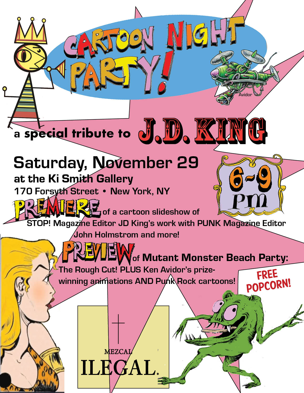 I knew of J.D. King's artwork after a comic strip he did called "Monster Beach Party" was published in the Village Voice. It seemed suspiciously based on "Mutant Monster Beach Party," which PUNK magazine had published earlier. I liked the guy's style, but by then PUNK was going under.