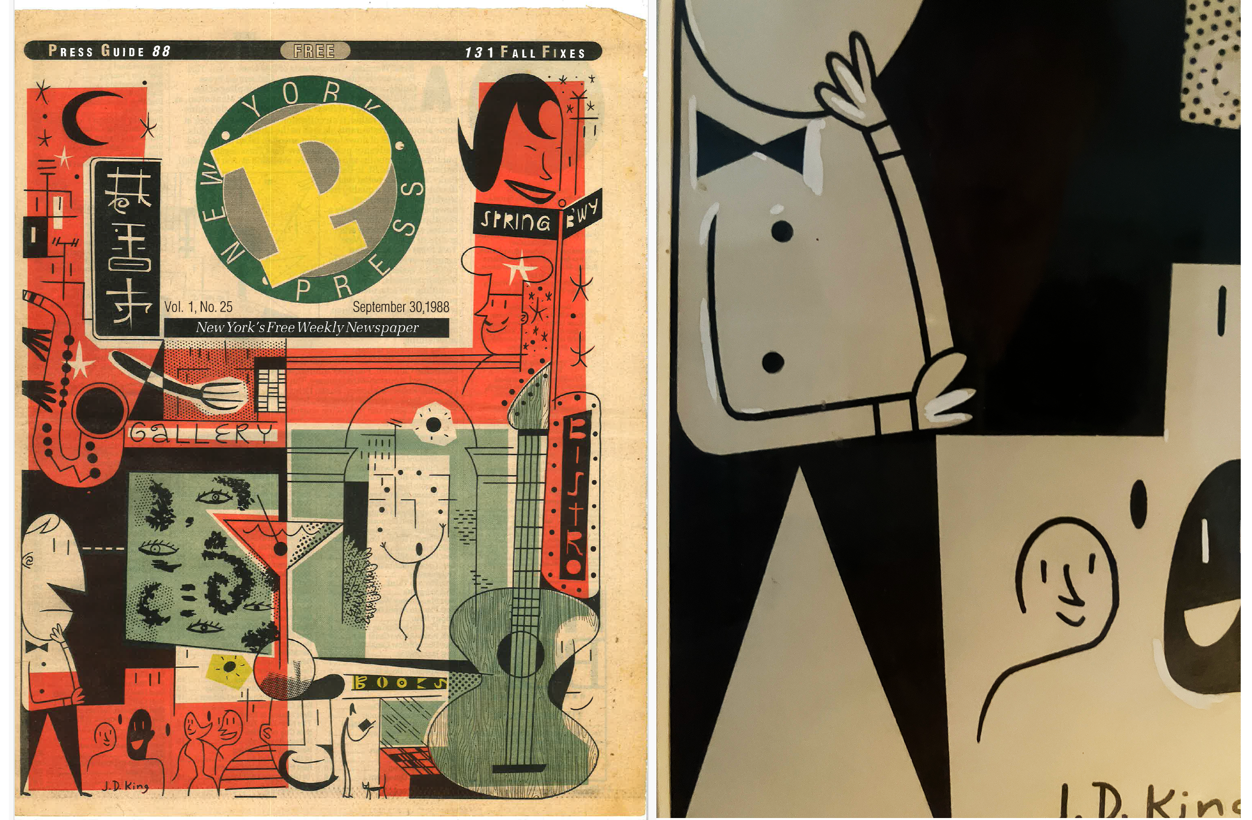 I first met J.D. in the spring of 1988 at the Soho offices of New York Press, about a month before our first weekly issue was published. How he came to the attention of art director Michael Gentile and me is hazy—it might've been through Art Spiegelman or Mark Newgarden—but in the early years of the paper his block illustrations were on the back page each week, in the middle of the "extra-classified" section known as "Press Box." In September of '88, J.D. created the cover art for our first "Best of Manhattan" annual.