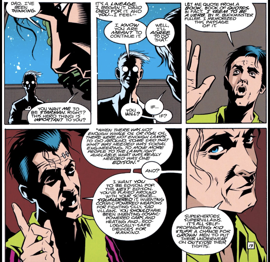 Just as Opal City is the idea of America captured in a single locale, what if we took that metaphor of opera to the characters? Because then Starman becomes this story of the United States in the 20th Century in microcosm.