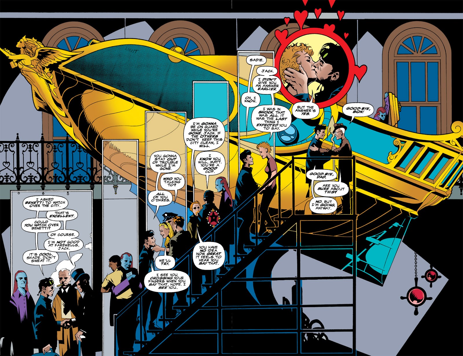 There are four and five issue arcs, the "Talking with David" issues, the "Times Past" issues. We meet Mikaal and Solomon Grundy, Jon Valor and Bobo Benetti. Matt O’Dare sees the light and tries to make things right. A Christmas special. The initial arc featuring the original Mist, an arc with Nash as the Mist. There’s the mad bomber Mr. Pip and the ongoing saga of the magic poster. To say nothing of the single issues which ease us out of one story and into the next in different ways. The first four years of the book, ending with Jack and Mikaal going into space are structured this way and are a lot of fun with a lot of momentum.