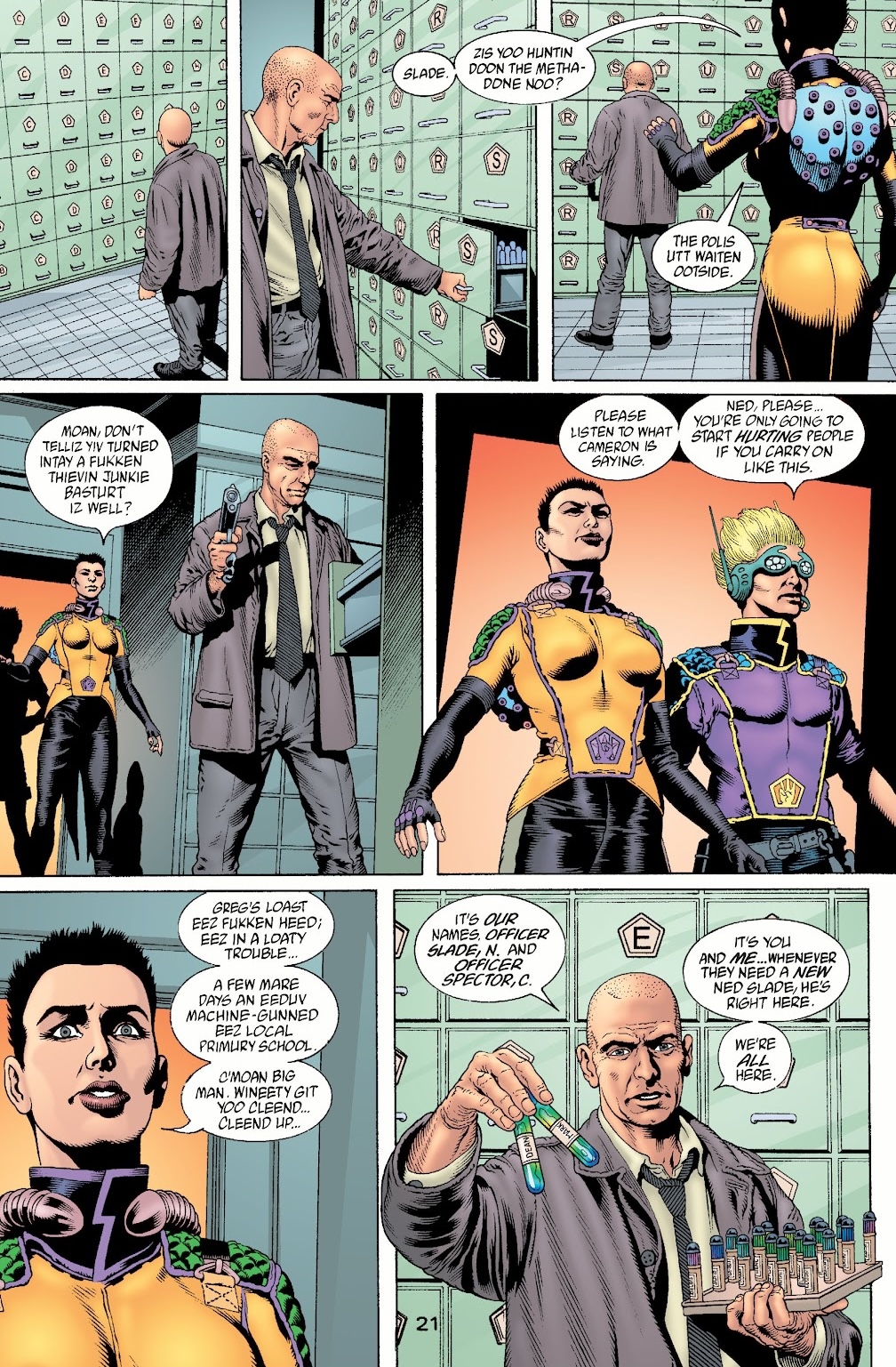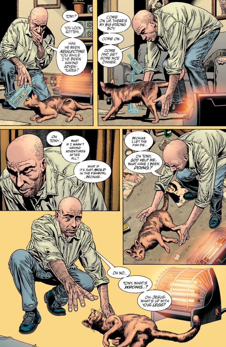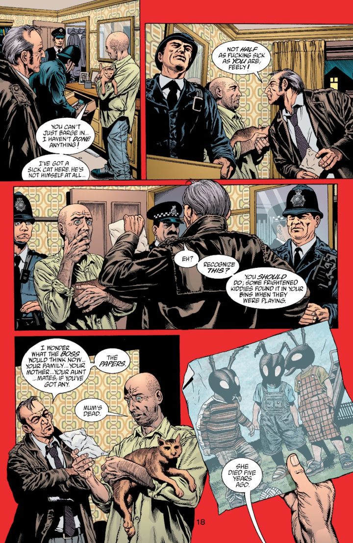 But my Dad had just died, so that was difficult. My cat was dying just like the cat in the story, which was hardcore. I thought I could look at this stuff because everything was going so well. So, I exposed myself to all these horrible things. I read about death and working in mortuaries. I was looking at a bunch of porn online and just the seedy crappy nature of that stuff. I was absorbing a lot of it, and it was brining me down. That’s why The Filth is funny. It’s kind of Pythonesque. Because I thought that the only way to deal with that toxic material was to take the piss out of it. Not get caught up in it and the comedy provided that distance. Where everything is stupid and everybody’s desires are just stupid and small and backwards. There’s this sense of not being caught in the Filth of it. But I was getting close, a closeness to stuff that was giving me the creeps and weirding me out. Looking at mortality. Looking at the dark side of stuff. Looking at what people really do to each other rather than what I want them to be in The Invisibles.