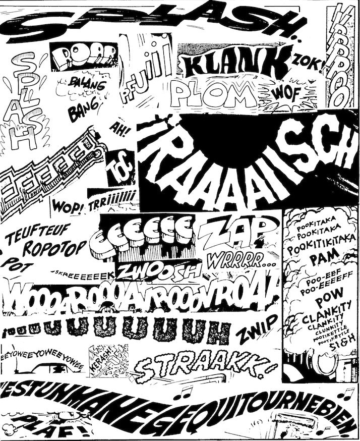 This is done with tongue in cheek; it also gives these icons of cartoon expression a sense of order and purpose. Name something and it’s important — in theory. Walker has fun with this silly but sensible nomenclature. He makes his points with his own doodles — some brisk and spontaneous — and many examples from mainstream and underground cartooning. In a full-page collage of sound effects, Robert Crumb’s work is present.