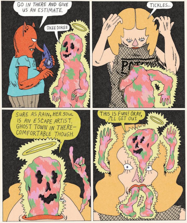 Initially, the look of Gradin’s cartooning style reminded me of Home Movies from the early days of Adult Swim. That isn’t exactly a compliment. The style felt dashed off when I started the book, characters with odd proportions, absurdity for the sake of being weird. However, Gradin won me over. I came to admire his jubilant linework. There is a real sense of fun to Pageant. Gradin makes a choice, like a demon inhabiting a toddler or Ponce’s feet clad in cuban heeled boots, and commits to it. I admire that. A big part of telling a successful story is believing in the logic of the world you’ve created and Gradin inhabits his world completely.