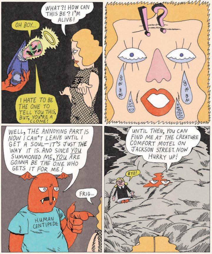 A demon gets involved when Ghost Meat (the first clone) summons him from Hell, but the demon is pissed when he realizes the clone doesn’t have a soul to offer. He takes a construction job while she hunts one down, as he can’t return to hell without a fresh soul.