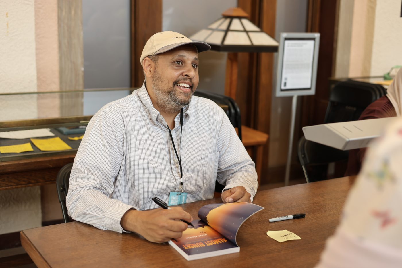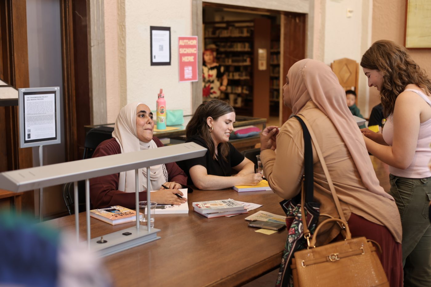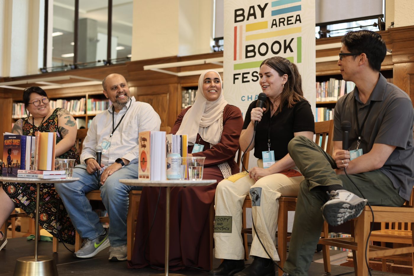 Wahab Algarmi, Mary Shyne, Gene Luen Yang and Huda Fahmy on the Bay Area Book Festival panel at the Berkeley Public Library (May 31)