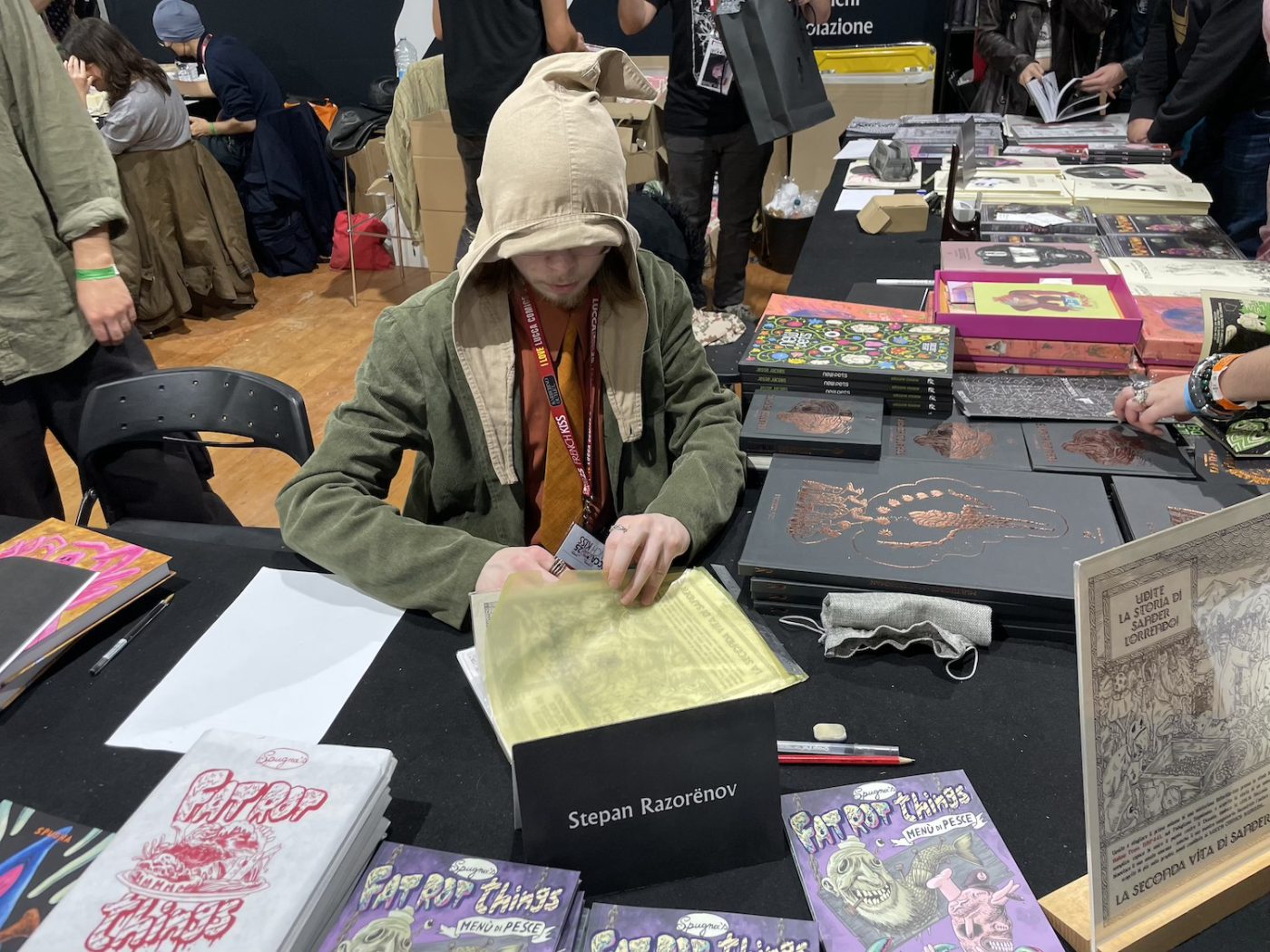 Among the other international guests were part of the main cast of Stranger Things; Kei Urana, author of the manga series Gachiakuta; mangaka Takashi Murakami (Stargazing Dog); politician and mangaka Ken Akamatsu (I still can’t quite wrap my head around the fact that I saw him, at least, in a curious panel with Tex artist Fabio Civitelli … what did they have in common?!); Teenage Mutant Ninja Turtles co-creator Kevin Eastman, who also had an exhibition dedicated to him; and Akemi Takada, one of the greatest Japanese artists of the 1980s, a character designer who co-created the anime Creamy Mami and worked on many beloved series such as Patlabor and Kimagure Orange Road. Japanese underground artist Jun Hayami, known for his work in the guro hentai genre, attracted considerable interest at the In Your Face Comix booth, with long lines of fans every day as the tireless author spent hours drawing.