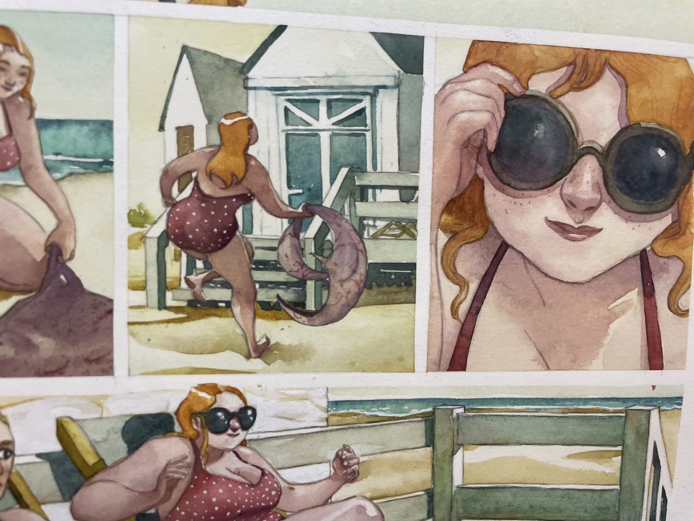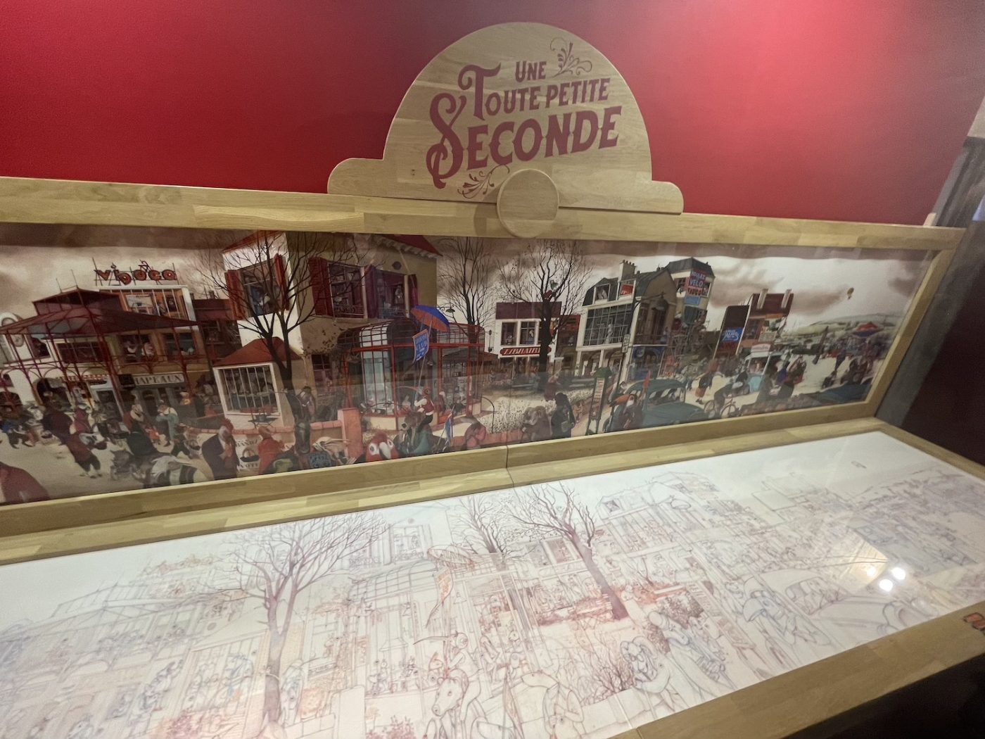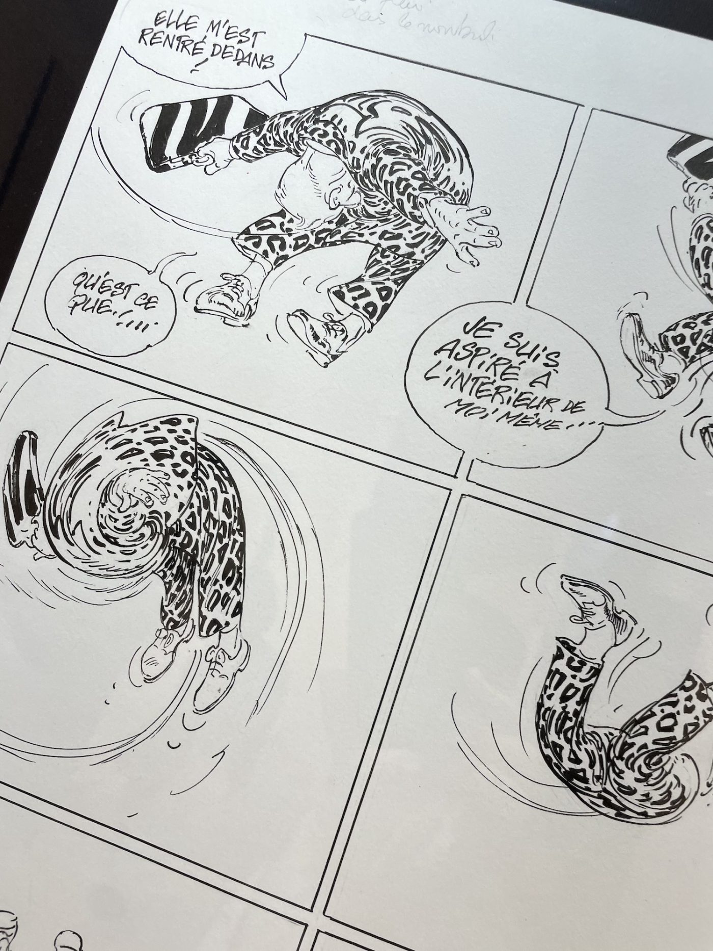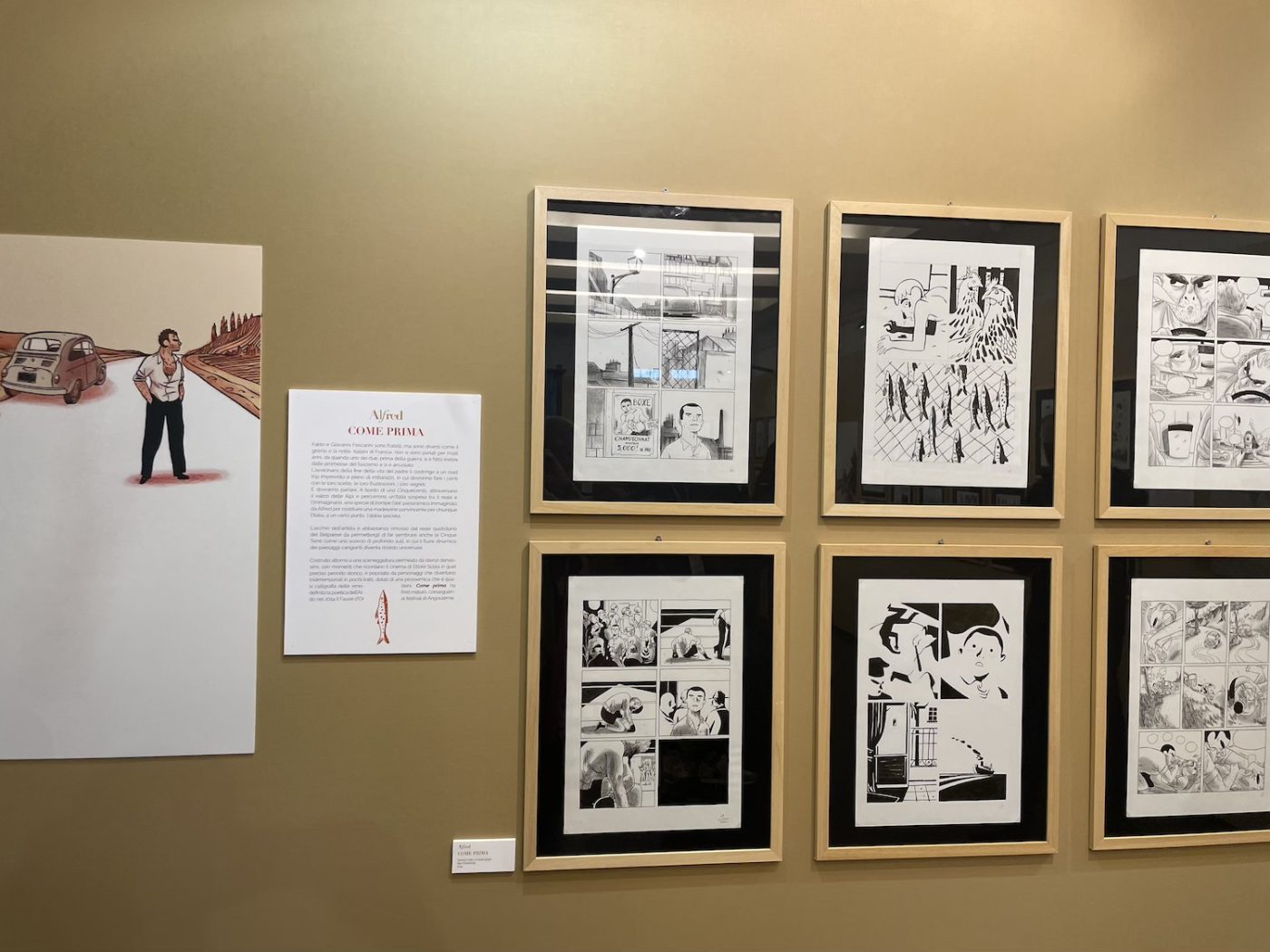 So, with just enough time left before the festival closed his doors, I ran across town to see works by Moebius, Druillet, Florence Cestac, Chantal Montellier, Jacques Tardi, and many others. The show was definitely astonishing, with incredible pieces from the Métal Hurlant era. As if that weren’t enough, on the ground floor of the same building there was also a beautiful exhibition dedicated to contemporary French cartoonist Alfred (aka Lionel Papagalli). It made me rediscover the author’s brilliant storytelling and expressive artwork, after reading his first book of the series years ago, and maybe not even fully appreciating it at the time. I believe the only one of his books translated into English is Why I Killed Peter, published by NBM, while the show focused on his “Italian trilogy” — Come Prima, Maltempo, and Senso (the titles are also in Italian in their original versions), whose main themes include travel, family, friendship, and self-confrontation, across stories that are not directly connected to each other.