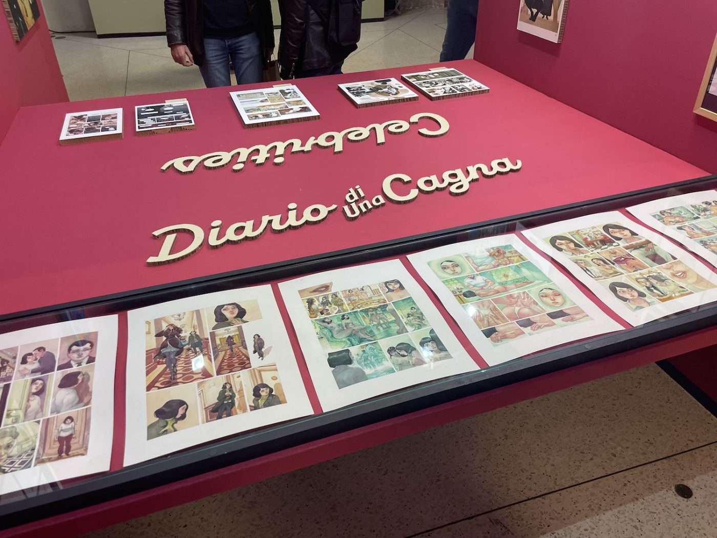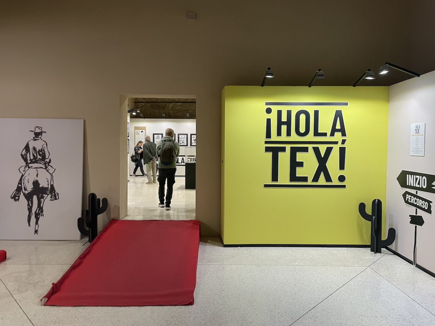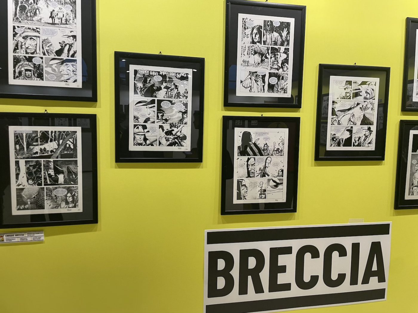 ¡Hola, Tex! was curated by Riccardo Moni and Mauro Uzzeo and dedicated to Hispanic artists who have worked on the Texone, the annual giant-format special of Tex, the iconic and long-living Western hero published by Sergio Bonelli Editore. Artists featured included Alfonso Font, Enrique Breccia, Carlos Gómez, and Horacio Altuna. Unfortunately, many of the pieces on the walls were prints, but there were also original pages by Altuna and Breccia. Especially with Breccia, even a single page feels like a revelation. I am particularly fascinated by his originals, with their extremely precise lines and strong personality, so different from his father Alberto’s style and yet deeply rooted in the South American artistic tradition. I had seen two exhibitions dedicated to Breccia’s sons in two months (the other one was at Treviso Comic Book Festival), and this time I even found myself almost guiding a small group of visitors.