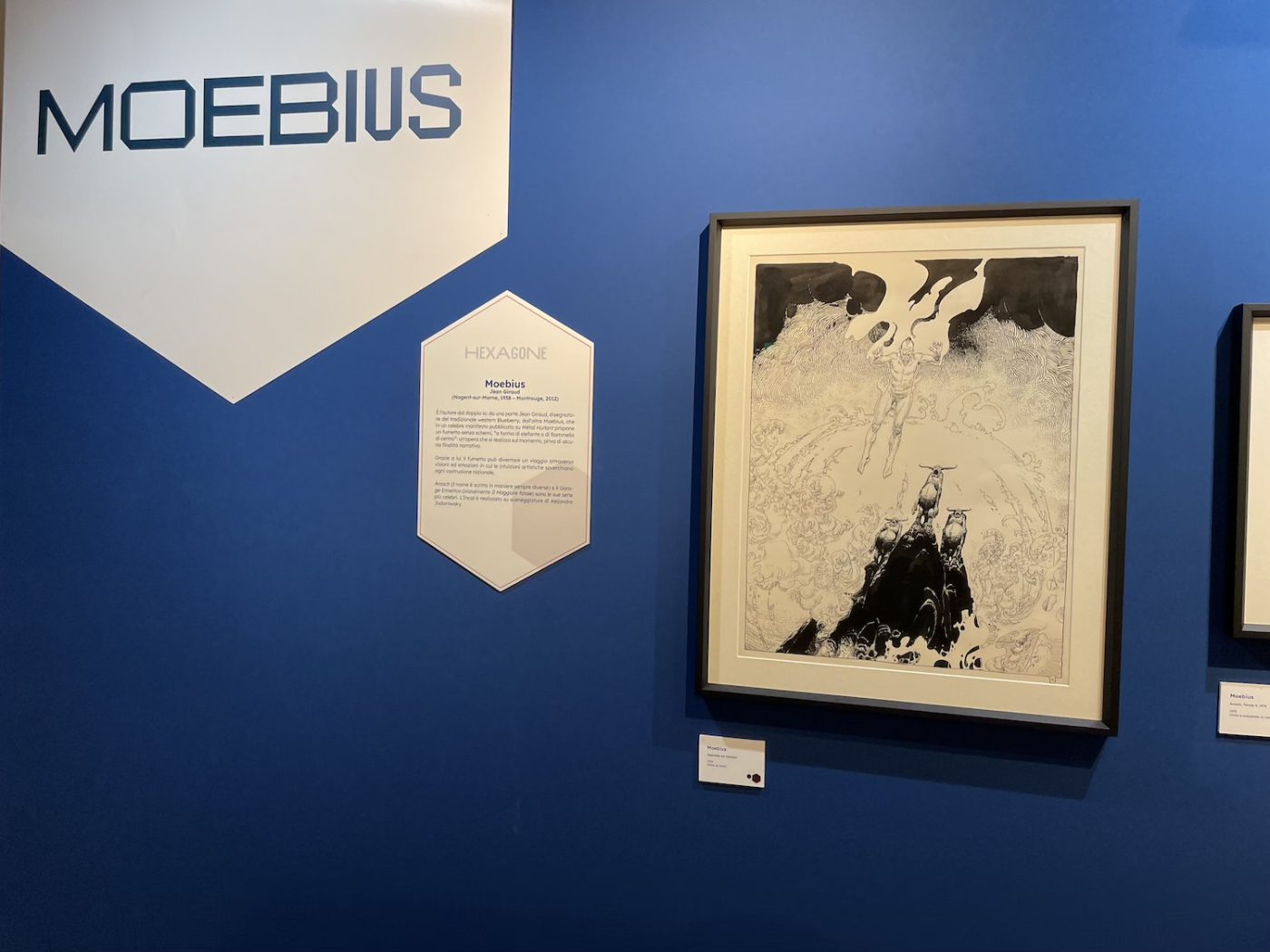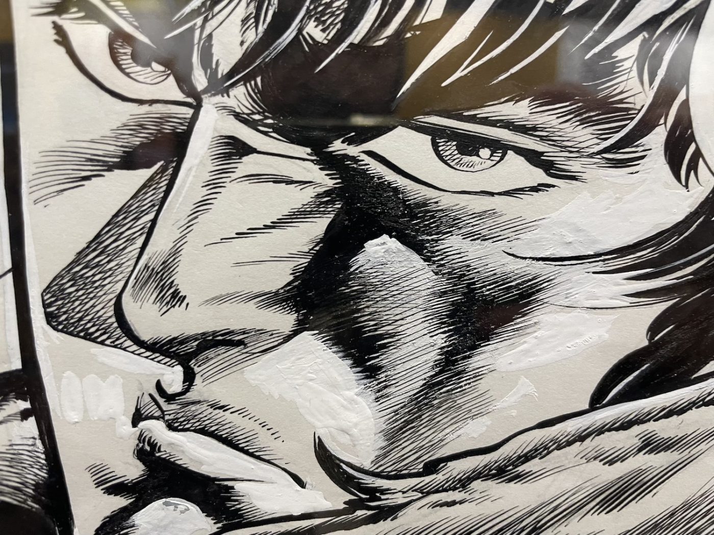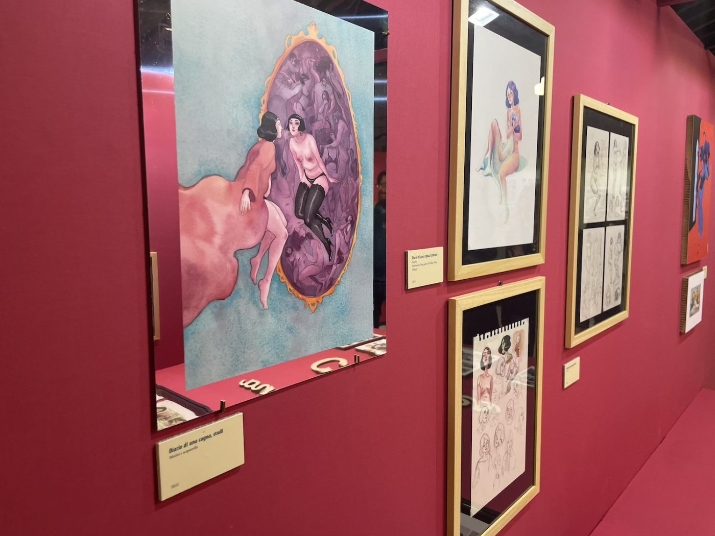 ¡Hola, Tex! was curated by Riccardo Moni and Mauro Uzzeo and dedicated to Hispanic artists who have worked on the Texone, the annual giant-format special of Tex, the iconic and long-living Western hero published by Sergio Bonelli Editore. Artists featured included Alfonso Font, Enrique Breccia, Carlos Gómez, and Horacio Altuna. Unfortunately, many of the pieces on the walls were prints, but there were also original pages by Altuna and Breccia. Especially with Breccia, even a single page feels like a revelation. I am particularly fascinated by his originals, with their extremely precise lines and strong personality, so different from his father Alberto’s style and yet deeply rooted in the South American artistic tradition. I had seen two exhibitions dedicated to Breccia’s sons in two months (the other one was at Treviso Comic Book Festival), and this time I even found myself almost guiding a small group of visitors.
