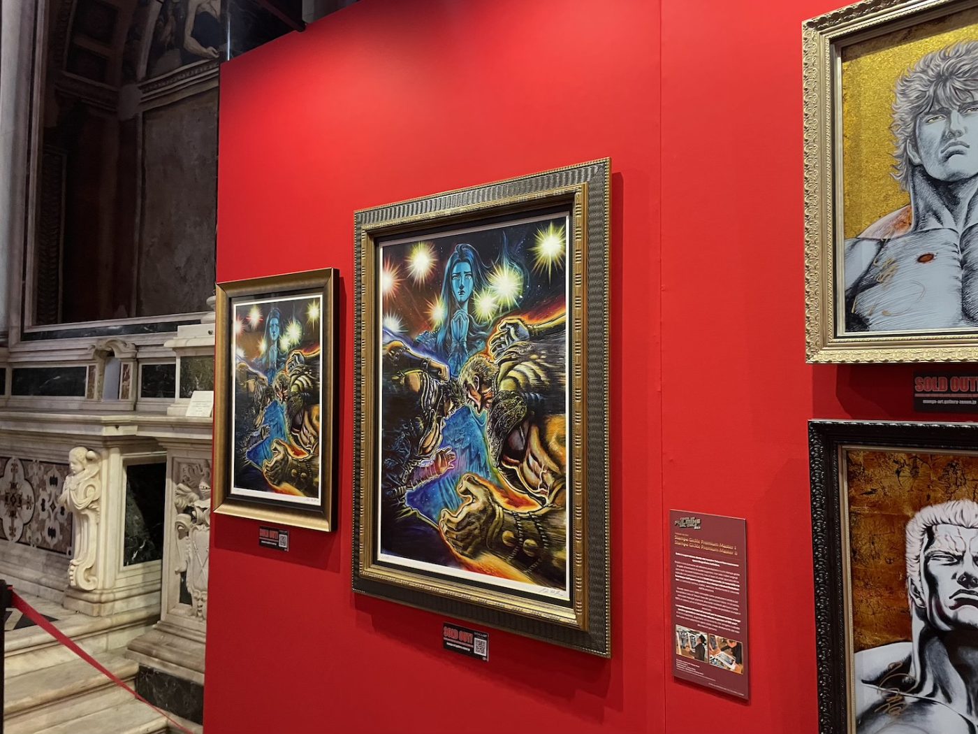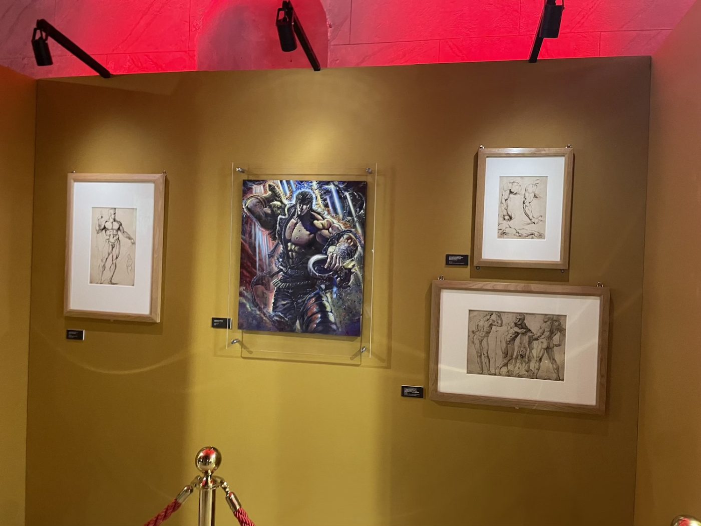 The Church of the Servi hosted a major exhibition dedicated to Tetsuo Hara’s career, curated by Alessandro Apreda. It featured a vast selection of works, especially from the early days of Hokuto no Ken. The exhibition was a true revelation. The varied and intense lines, the airbrushed colors, the exaggerated forms combined with anatomical precision, and even the visible mistakes and corrections all contributed to a truly powerful experience (which almost brought tears to my eyes). The show also included three drawings by Florentine Renaissance sculptor and painter Baccio Bandinelli, loaned by the Uffizi Gallery, creating an intriguing dialogue with Hara’s art.