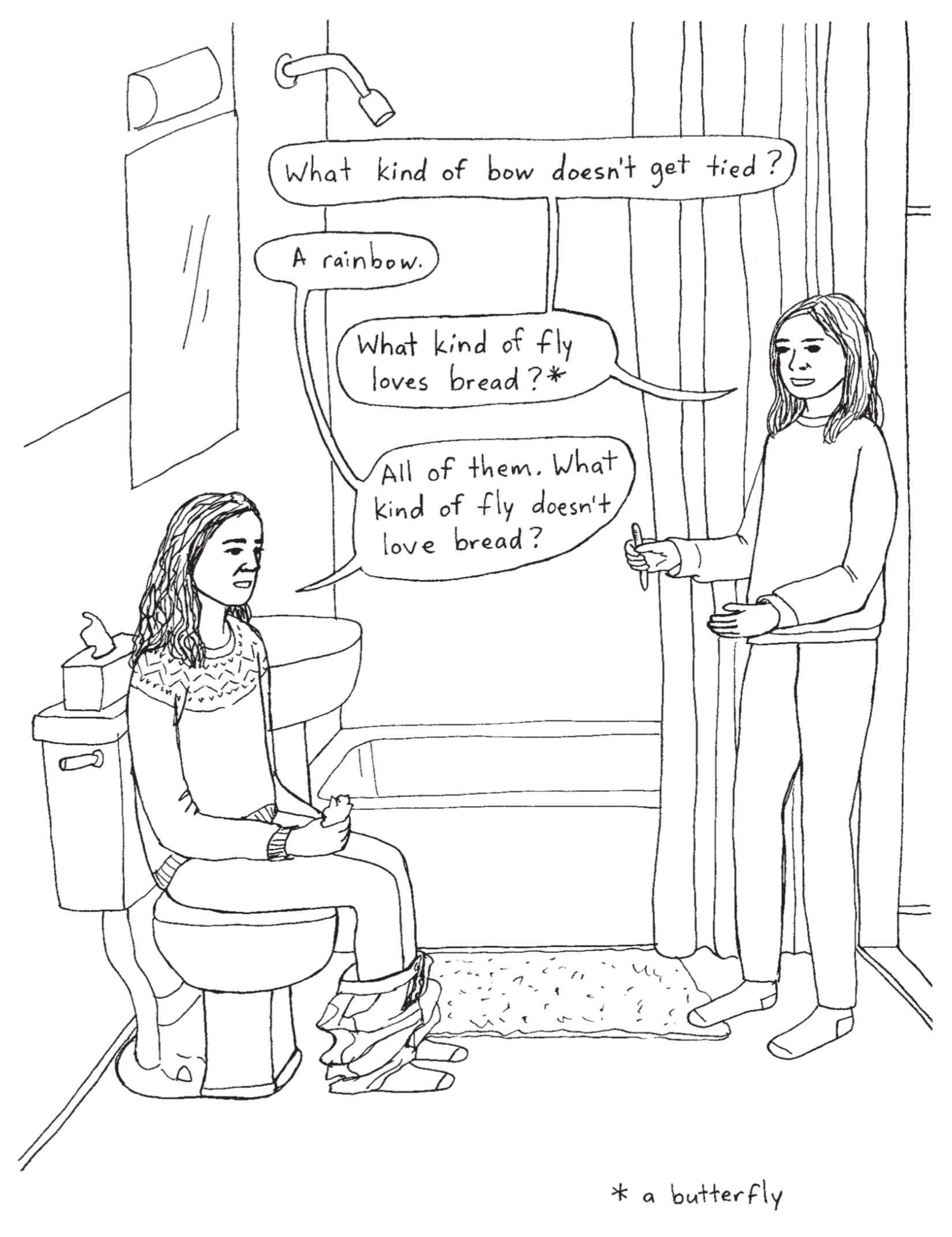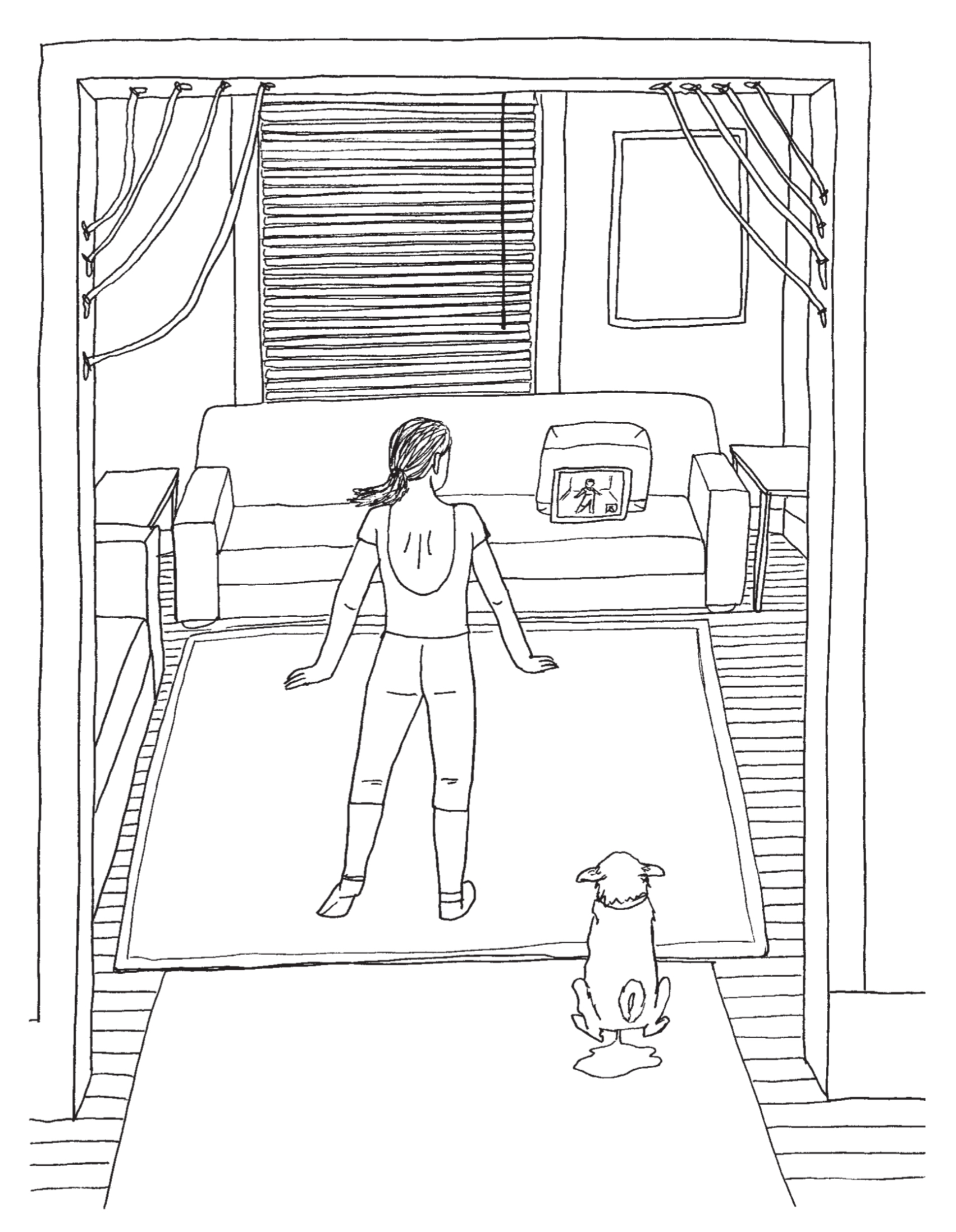 Roberts sketches in ink, as detailed in the book itself. These aren’t sketches how you or I would sketch, because they’re good enough to put in a book. They’re well composed, sparse. She knows how to use the thin line to create planes of negative space on the page.