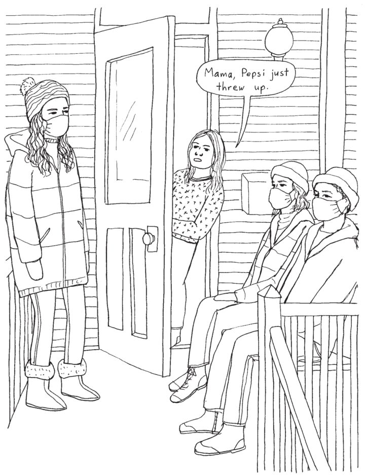 Structurally it reads very much as if initially serialized. It wasn’t, unless the indicia is fibbin’. In form it’s either full page illustrations or four-panel strips, with only a handful of exceptions. It’s the story of a few years, and not just any few years but the last few years of all our lives that included Covid, as well as the general darkening of the national mood. I don’t know how to break it to you, but the news has been kind of intense for a while.