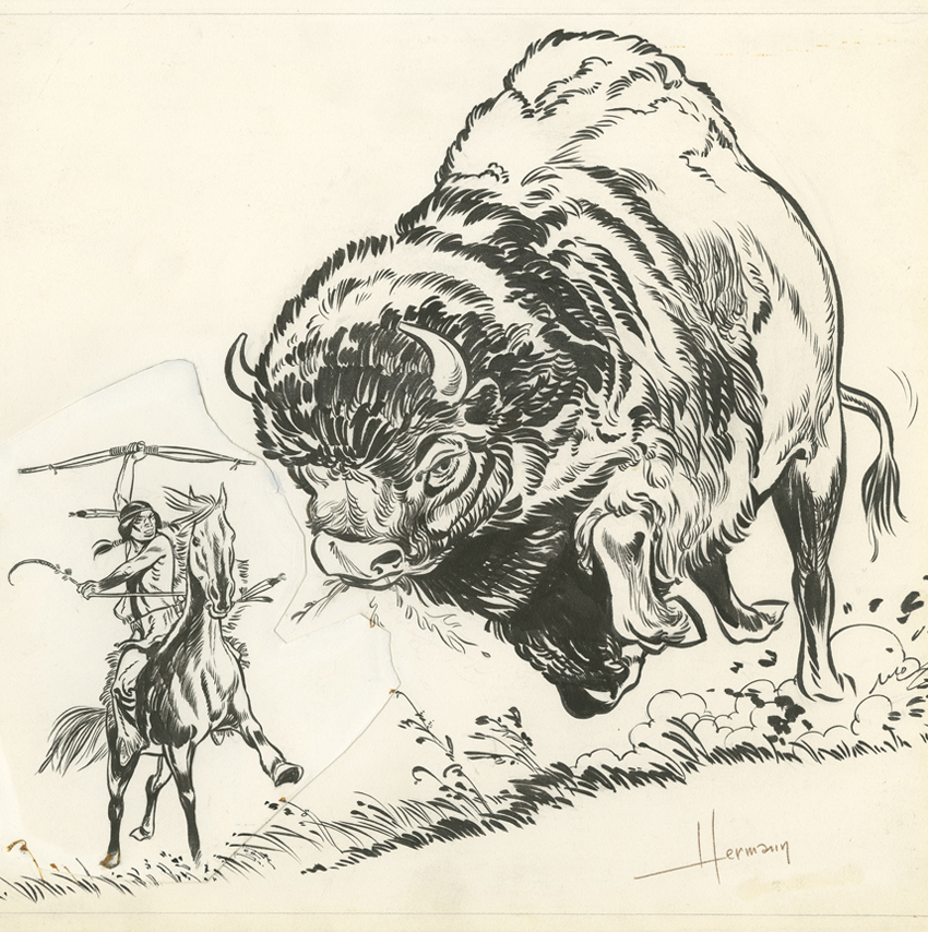 In 1969, Prince was followed by Comanche. Along with Moebius' Blueberry, Jijé's Jerry Spring, Tibet's Chick Bill and Morris' Lucky Luke, this would help remake the Western. Greg, however, made its title character female. "Once Greg had given Hermann Comanche," noted the Belgian critic Alain Lorfèvre, "his brushwork somehow seemed to liberate itself."