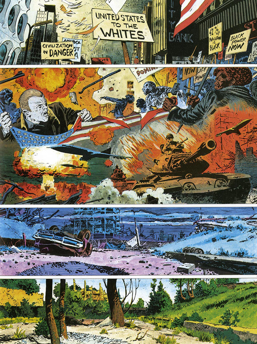 The Jeremiah of its title is an orphan. Clearly, he's also a son of the spaghetti western. But his American frontier isn't some random wilderness. It's the landscape left over from a civil war, one in which U.S. racial hatreds have caused atomic disaster. Initially published as a strip in Zack, Jeremiah was picked up by Metal Hurlant and, after 1988, issued by Dupuis.