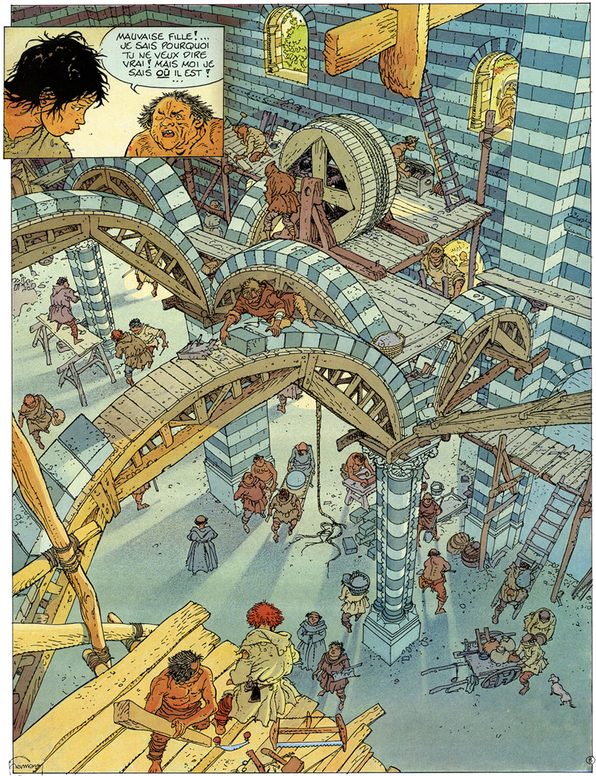 Hermann's medieval epic, Les Tours de Bois Maury (1984-2021), features a similar roster. It has Assunta, a young (and very dark-skinned) Sicilian noble, the peasant Babette, who gives her life to save her suitor and Eloïse, a crop-haired avenger handy with a crossbow.