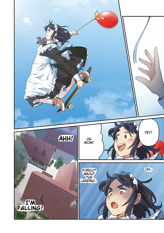 It’s a serious question. Poke around the corners of the story you’re given. What is the artist trying to tell you about this world, whose existence is a precondition of the story? The world of Maid to Skate is a placid place, one that appears on first glance to have far fewer problems than our own. The titular skating maids are members of some kind of order, young skating maids living in a communal house and splitting their time between the two disciplines.